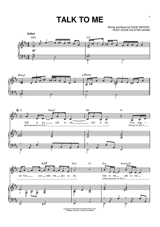 Digital Sheet Music for Talk To Me by Frank Sinatra, Eddie Snyder, Stan Kahan, Rudy Valee scored for Piano/Vocal/Chords; id:390404