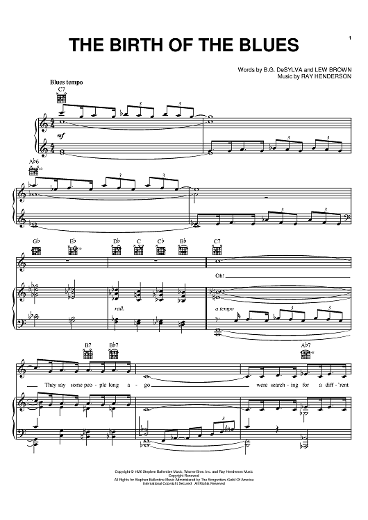 Digital Sheet Music for The Birth Of The Blues by Frank Sinatra, Ray Henderson, Lew Brown, Buddy DeSylva scored for Piano/Vocal/Chords; id:388528