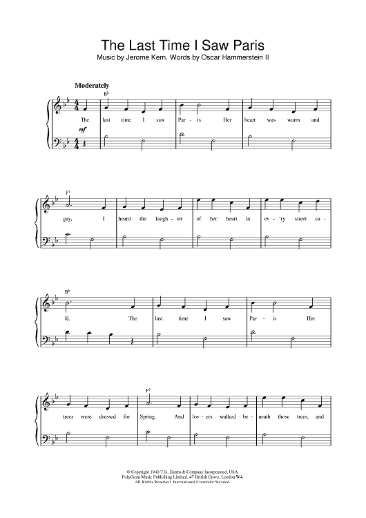 Digital Sheet Music for The Last Time I Saw Paris by Frank Sinatra, Jerome Kern scored for Piano; id:380739