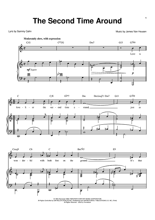 Digital Sheet Music for The Second Time Around by Frank Sinatra, Sammy Cahn, Jimmy Van Heusen scored for Piano/Vocal/Chords; id:371417