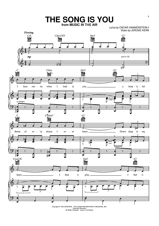 Digital Sheet Music for The Song Is You by Frank Sinatra, Jerome Kern, Oscar Hammerstein II, Vic Damone, Stan Getz scored for Piano/Vocal/Chords; id:382057
