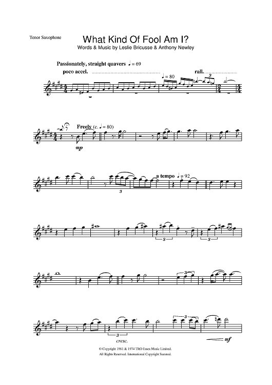 Digital Sheet Music for What Kind Of Fool Am I by Frank Sinatra, Leslie Bricusse, Anthony Newley scored for Lead Sheet; id:386902