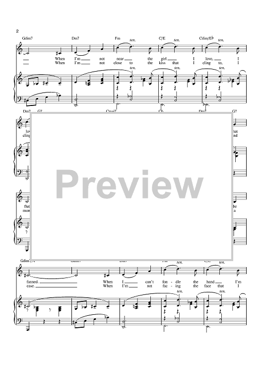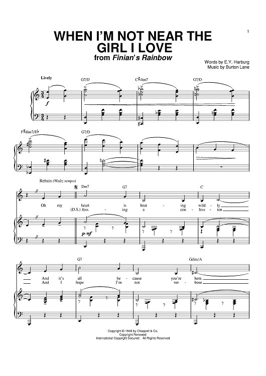 Digital Sheet Music for When I'm Not Near The Girl I Love by Frank Sinatra, Burton Lane, E.Y. "Yip" Harburg, Percy Faith scored for Piano/Vocal/Chords; id:379401