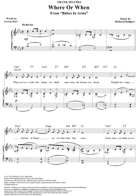 Digital Sheet Music for Where Or When by Judy Garland, Frank Sinatra, Celine Dion, Richard Rodgers, Lorenz Hart, Lena Horne scored for Piano/Vocal/Chords; id:255863