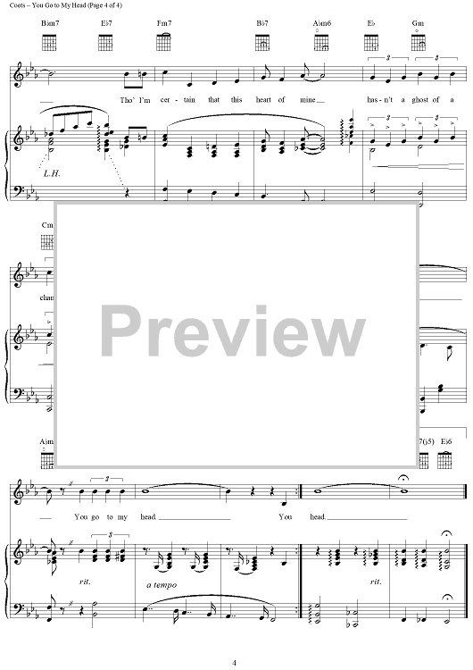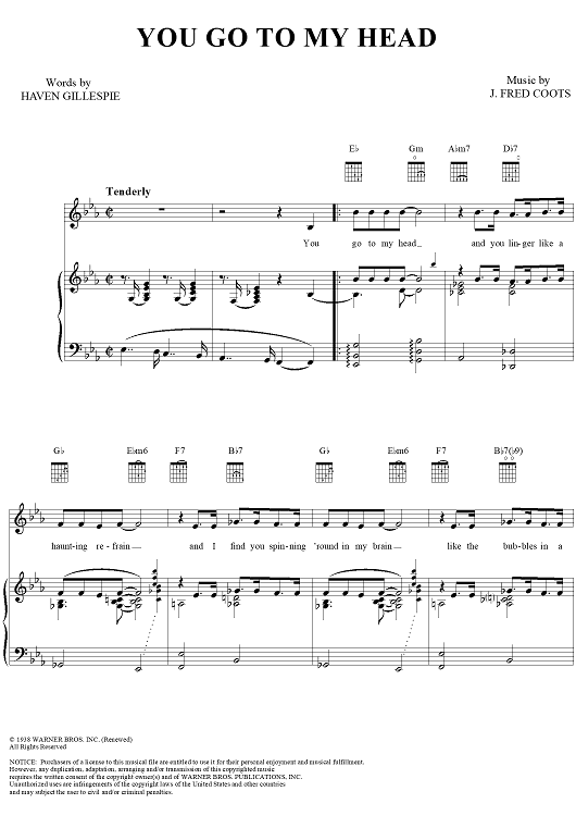 Digital Sheet Music for You Go To My Head by Frank Sinatra, Haven Gillespie, J. Fred Coots scored for Piano/Vocal/Chords; id:272222