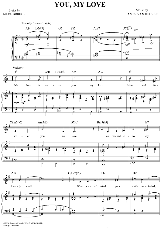 Digital Sheet Music for You, My Love by Frank Sinatra, Jimmy Van Heusen, Mack Gordon scored for Piano/Vocal/Chords; id:111956