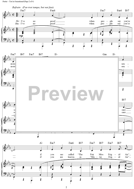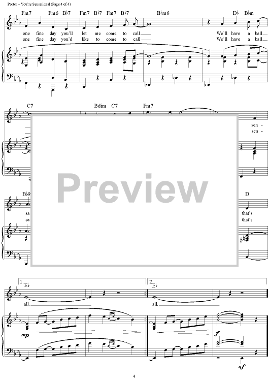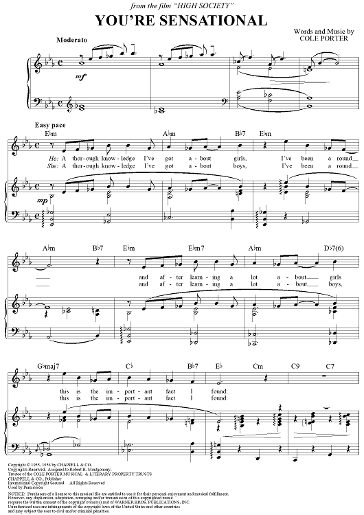 Digital Sheet Music for You're Sensational by Frank Sinatra, Cole Porter scored for Piano/Vocal/Chords; id:111955