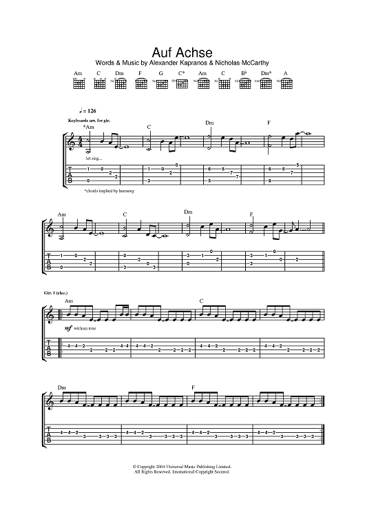 Digital Sheet Music for Auf Achse by Franz Ferdinand, Alexander Kapranos, Nicholas McCarthy scored for Guitar Tab; id:380201