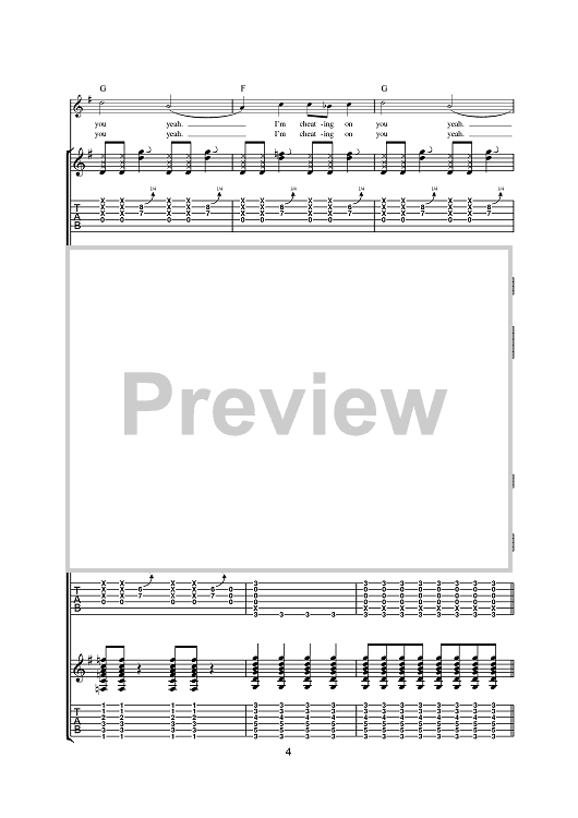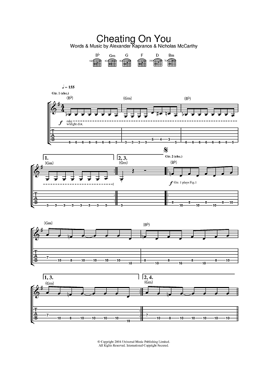 Digital Sheet Music for Cheating On You by Franz Ferdinand, Alexander Kapranos, Nicholas McCarthy scored for Guitar Tab; id:380202
