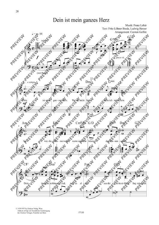 Digital Sheet Music for Dein ist mein ganzes Herz by Franz Lehár, Carsten Gerlitz scored for Piano; id:491259
