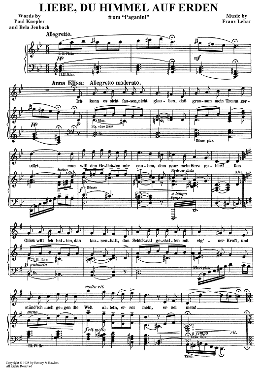 "Liebe, du Himmel auf Erden" Sheet Music by Franz Lehár
