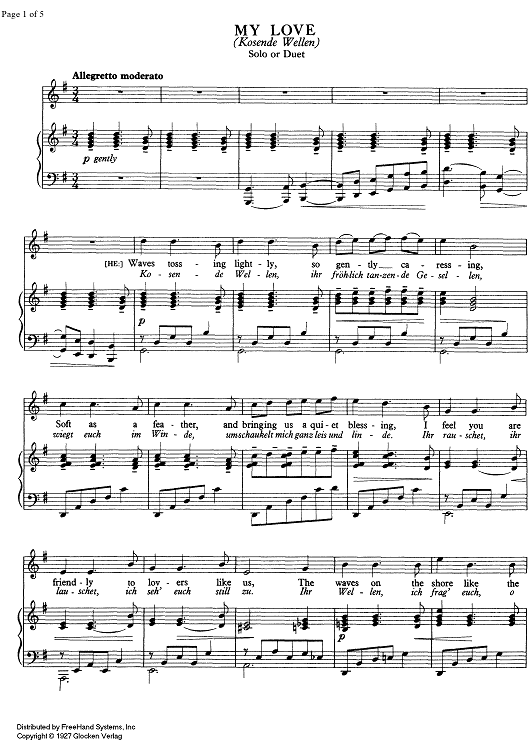 Digital Sheet Music for My Love by , Franz Lehár scored for Soprano or Tenor/Piano; id:332805