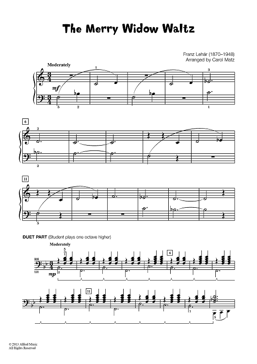 Digital Sheet Music for The Merry Widow Waltz by Franz Lehár, Carol Matz scored for Piano; id:451452