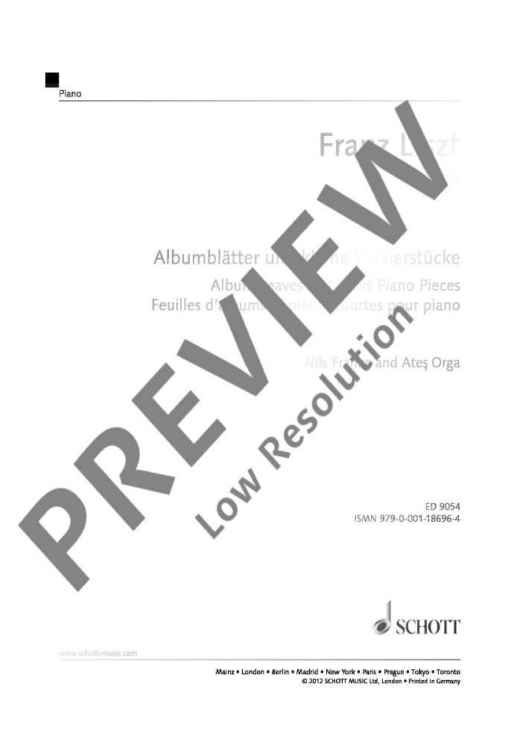 "Album Leaves and Short Piano Pieces" Sheet Music by Franz Liszt