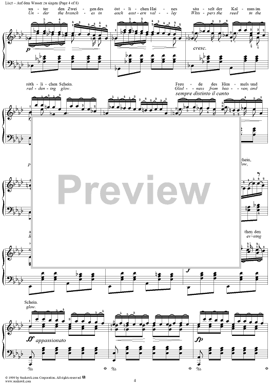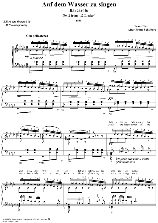 Digital Sheet Music for Auf dem Wasser zu Singen by Franz Liszt scored for Piano Solo; id:176691