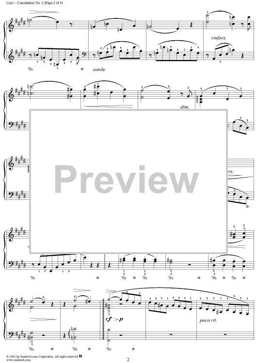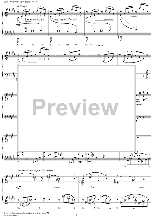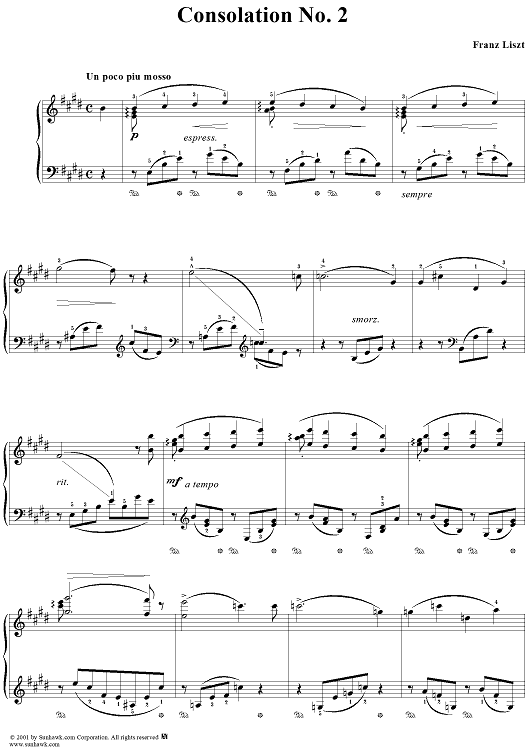 Digital Sheet Music for Consolation No. 2 by Franz Liszt scored for Piano Solo; id:259483