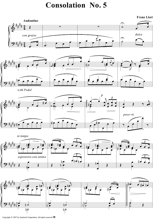 "Consolation No. 5 (Andantino)" Sheet Music by Franz Liszt