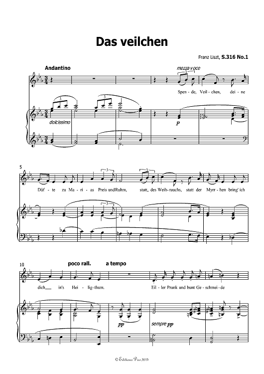 Das veilchen, in E flat Major, S.316 No. 1 for Voice and Piano