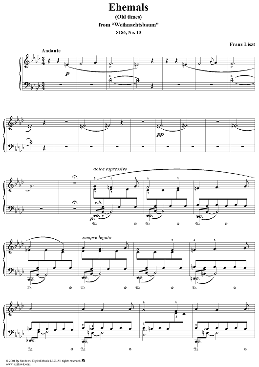 "Ehemals (Jadis), No. 10 from "Weihnachtsbaum", S186" Sheet Music by Franz Liszt