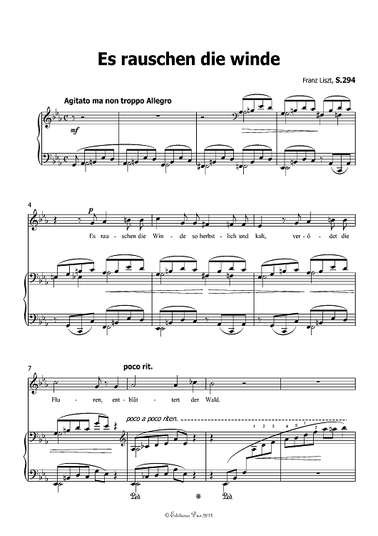Es rauschen die winde, S.294 in E flat Major, for Voice and Piano