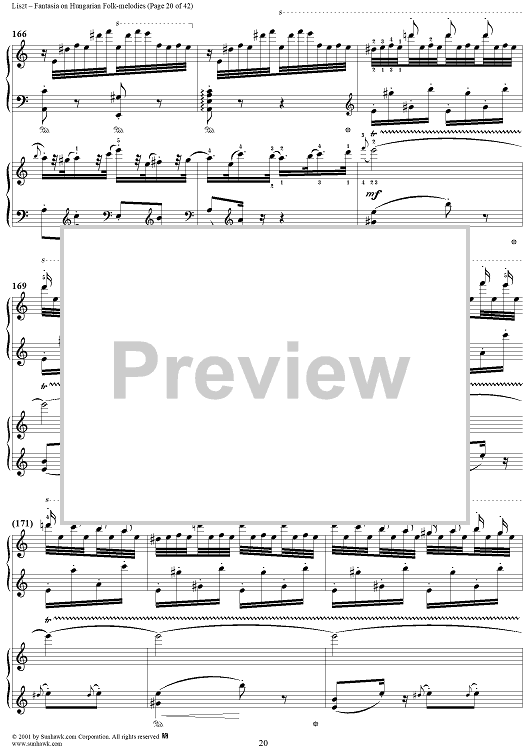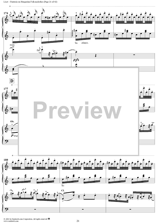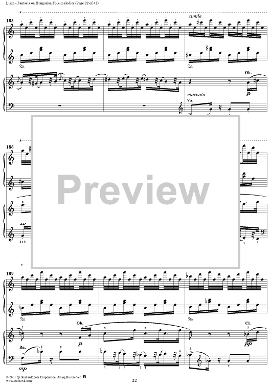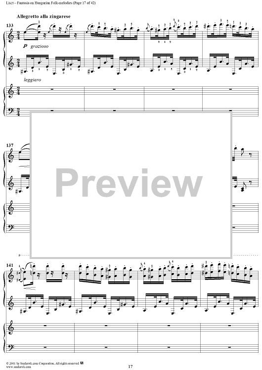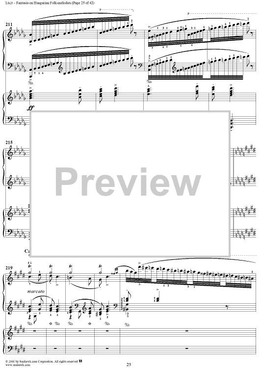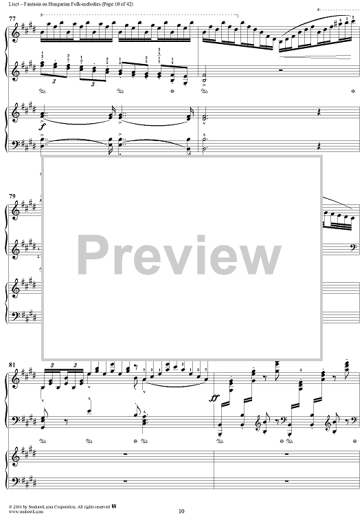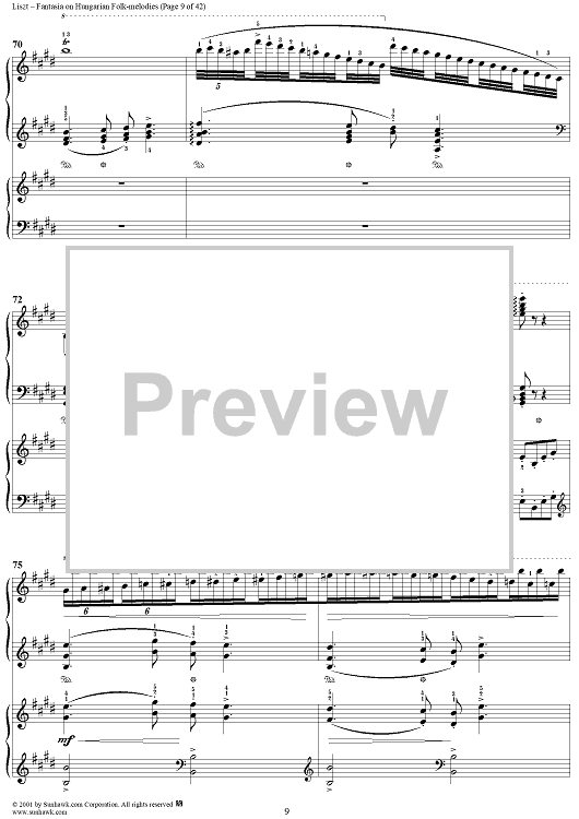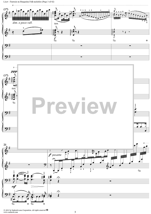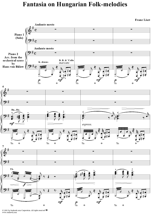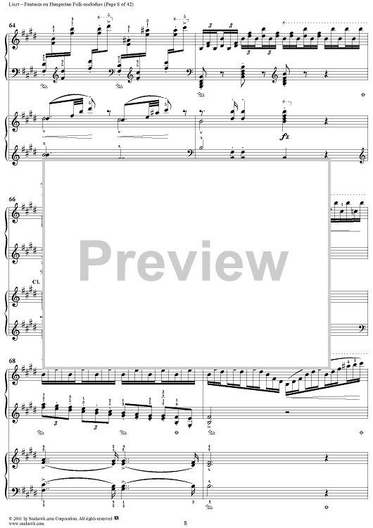 Digital Sheet Music for Fantasia on Hungarian Folk-melodies by Franz Liszt scored for 2 Pianos, 4 Hands; id:262447