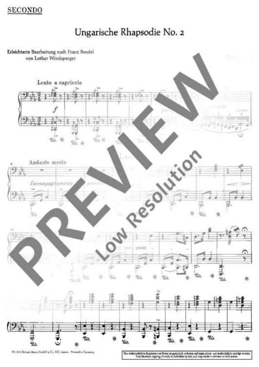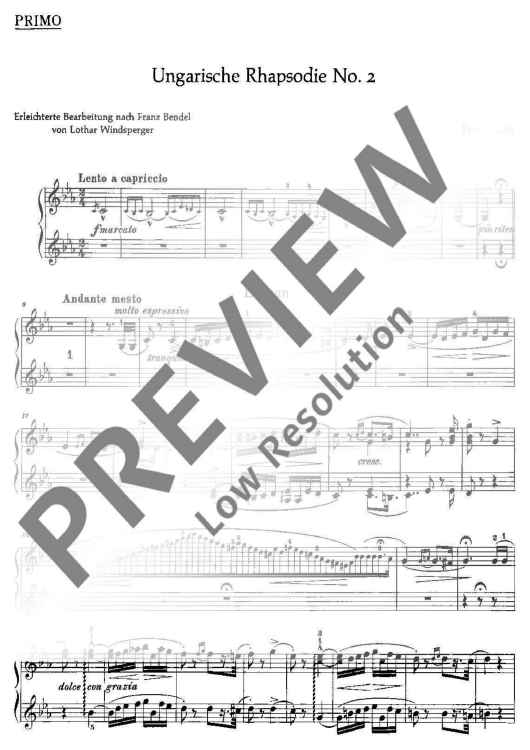 Digital Sheet Music for Hungarian Rhapsody in C minor by Franz Liszt, Franz Bendel, Lothar Windsperger scored for Piano (4 Hands); id:480304