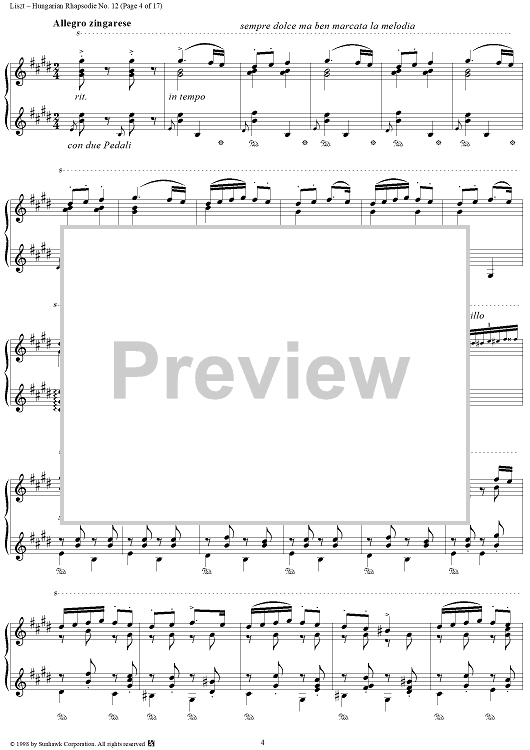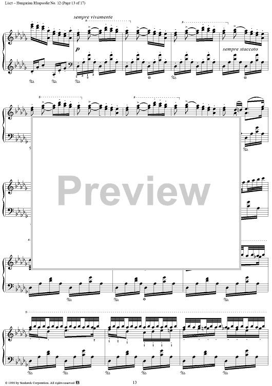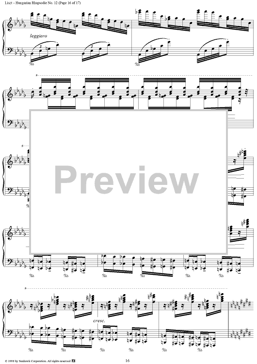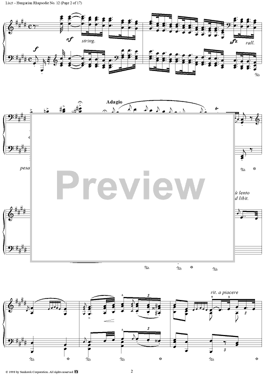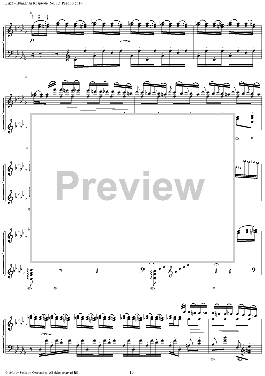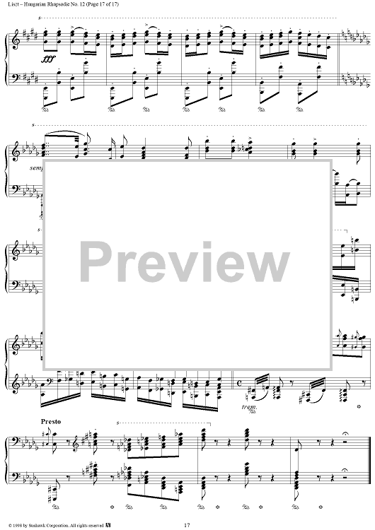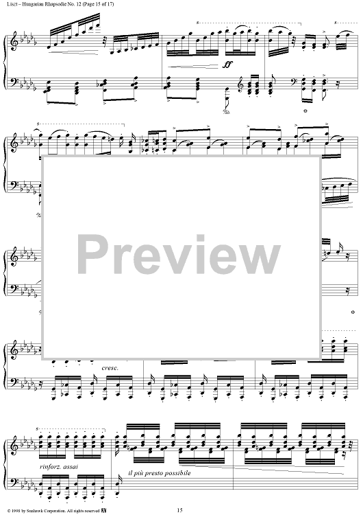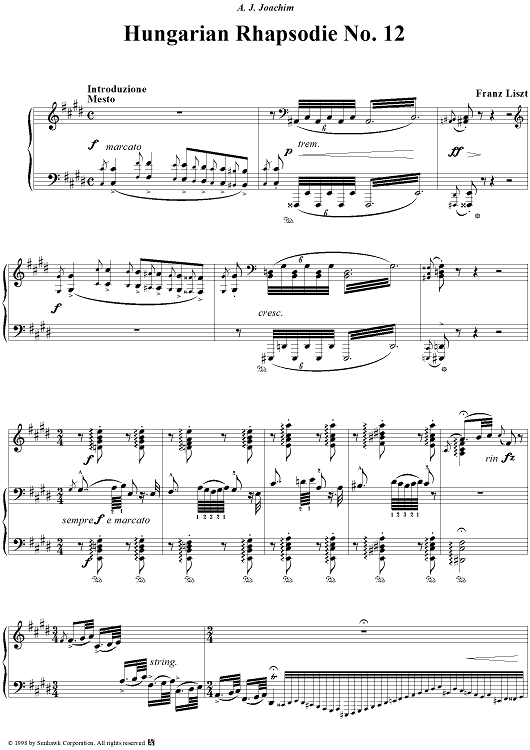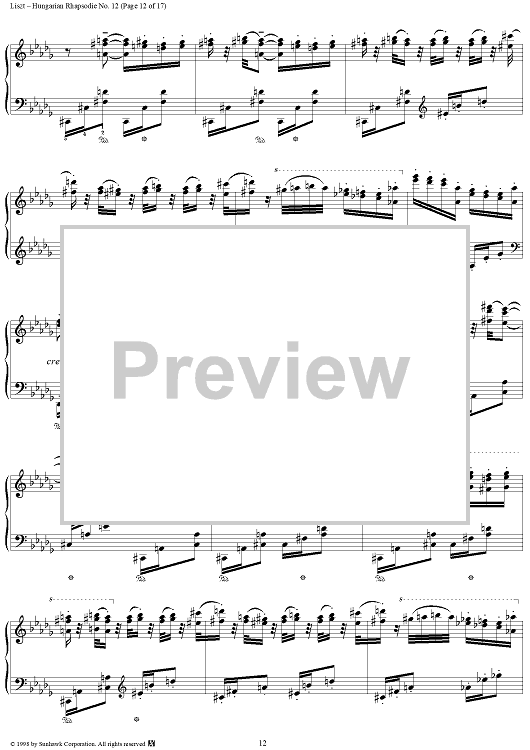 "Hungarian Rhapsody No. 12 in C-sharp minor" Sheet Music by Franz Liszt