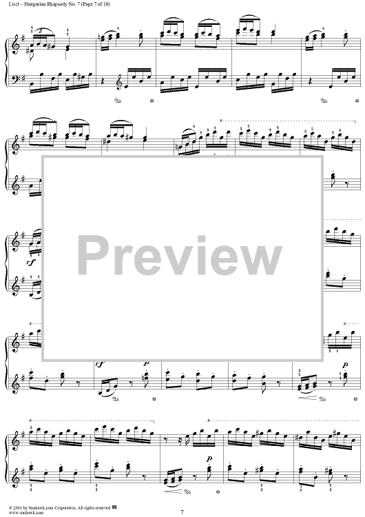 "Hungarian Rhapsody No. 7 in D minor" Sheet Music by Franz Liszt