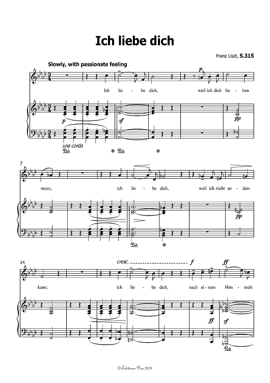 Ich liebe dich, S.315 in A flat Major, for Voice and Piano