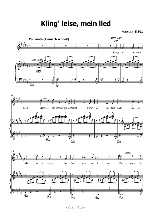 Kling leise,mein lied, S.301 in B Major, for Voice and Piano