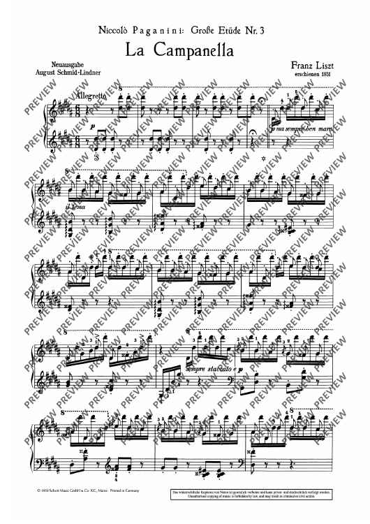 Digital Sheet Music for La Campanella by Franz Liszt scored for Piano; id:482453