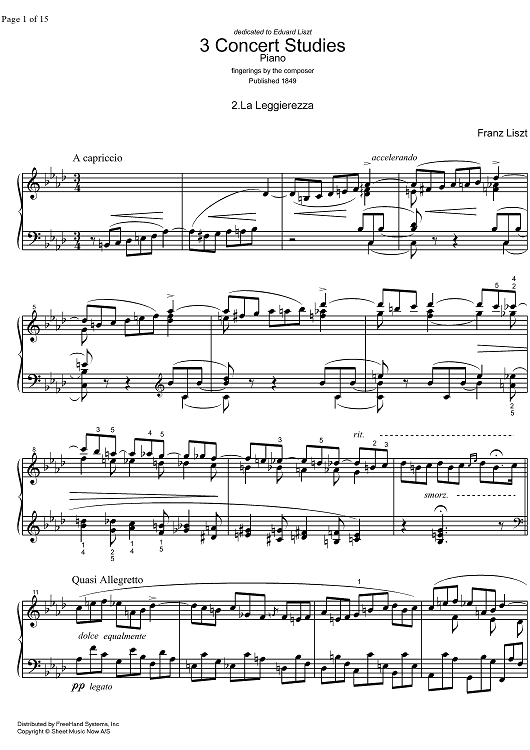 Digital Sheet Music for La Leggierezza, No. 2 from 3 Concert Studies by Franz Liszt scored for Piano Solo; id:329418