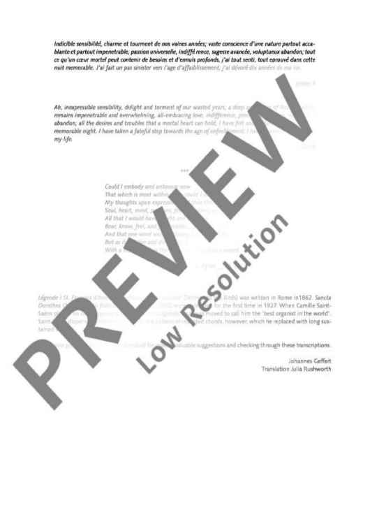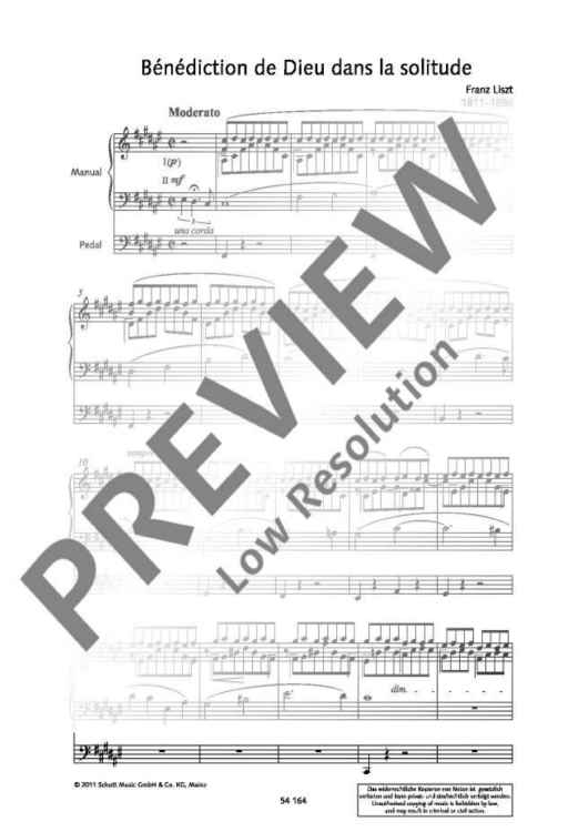 Liszt's works for organ are highlights of the virtuoso Romantic organ literature. This is why many organists will probably welcome the fact that a series of transcriptions based on piano works are added to the rather small Liszt repertoire. Johannes Geffert, professor of artistic organ playing at the Music Academy of Cologne, has chosen works that fit in well with church organ concerts: 'Bénédiction de Dieu dans la solitude' (from 'Harmonies poétiques et religieuses'), Legend No. 1 'St. François d'Assise - La prédication aux oiseaux', 'Sancta Dorothea' (1877), 'In Festo Transfigurationis Domini nostri Jesu Christ' (1880) and 'Vallée d'Obermann' (from 'Années de Pèlerinage'). All transcriptions are as close and faithful to the original piano version as possible. Interesting addition to the repertoire in good time for the Liszt Year 2011.