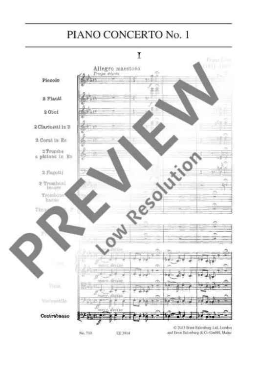 "Piano Concerto No. 1 Eb major - Full Score" Sheet Music by Franz Liszt