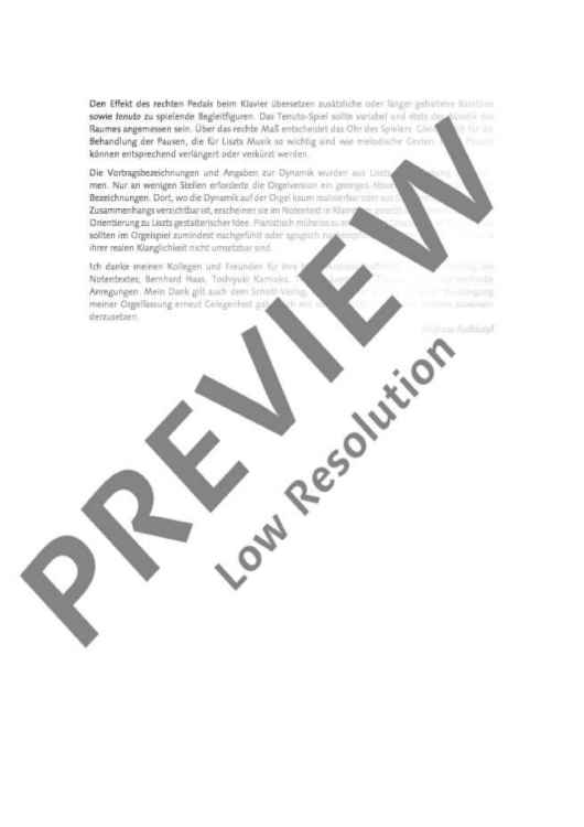The Sonata in B minor undoubtedly is the most important piano composition by Franz Liszt and a pinnacle of piano literature. The creation of the work around 1850 coincides with the period in which Liszt concentrated on the organ and its possibilities of sound and expression as well as on the music by Johann Sebastian Bach. Liszt composed several works for organ himself and arranged both some of his own works and works by other composers for this versatile instrument.While working on the arrangement, Andreas Rothkopf acted on the maxim to stay close to the original work with its finely nuanced texture and find his own tonal language appropriate for the organ on the basis of Liszt. For a better understanding of the arrangement, the interpreter may want to have a profound knowledge of the original piano text.