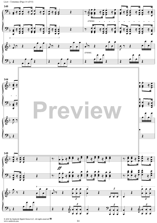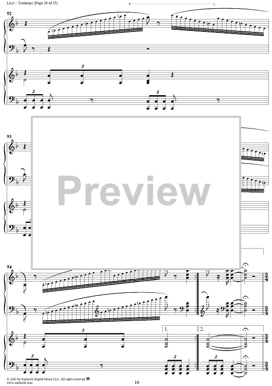 Digital Sheet Music for Totentanz by Franz Liszt, Alexander Siloti scored for 2 Pianos, 4 Hands; id:294542