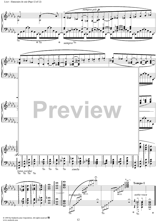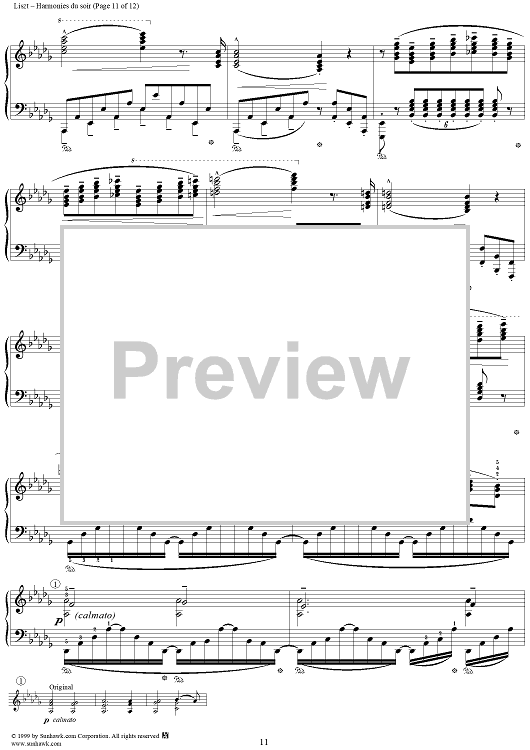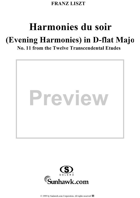 Digital Sheet Music for Transcendental Etude No. 11: Harmonies du soir (Evening Harmonies) in D-flat Major by Franz Liszt scored for Piano Solo; id:250974