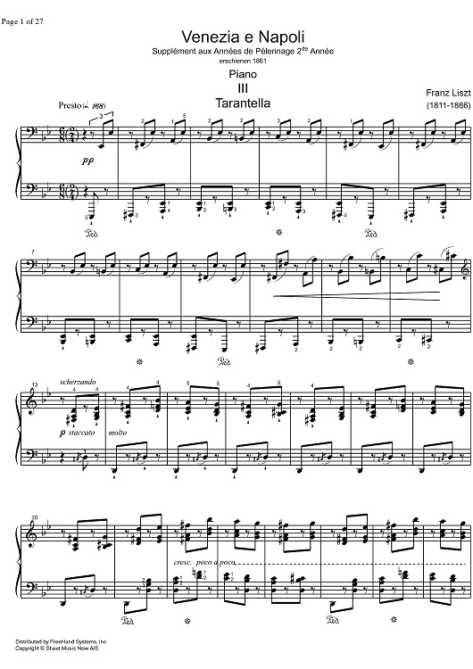 Digital Sheet Music for Venezia e Napoli by Franz Liszt scored for Piano Solo; id:322576