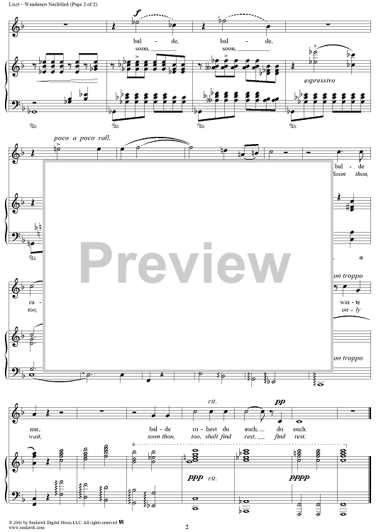 Digital Sheet Music for Wanderer's Night Song (Wanderers Nachtlied) by Johann Wolfgang von Goethe, Franz Liszt scored for Voice/Piano; id:251129