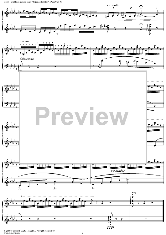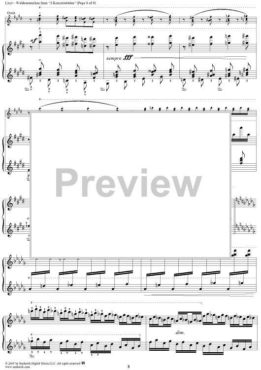 Digital Sheet Music for Zwei Konzertetüden, No. 1: Waldesrauschen by Franz Liszt scored for Piano Solo; id:308846
