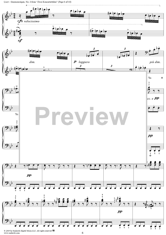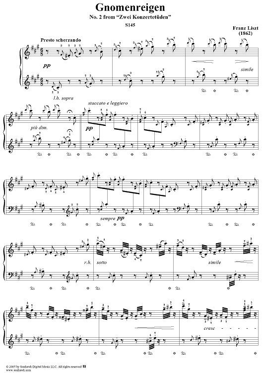 Digital Sheet Music for Zwei Konzertetüden, No. 2: Gnomenreigen by Franz Liszt scored for Piano Solo; id:315322