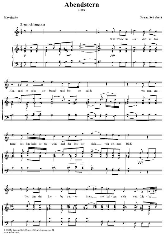 Digital Sheet Music for Abendstern, D806 by Franz Schubert scored for Voice/Piano; id:256338