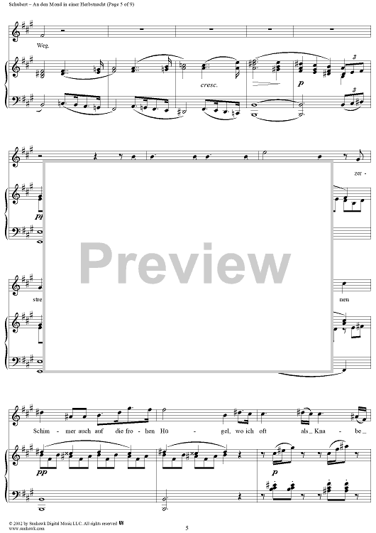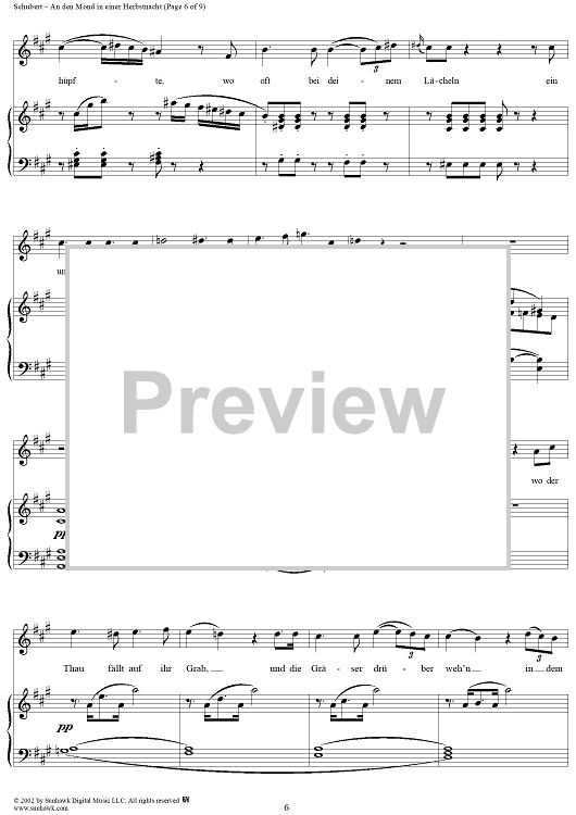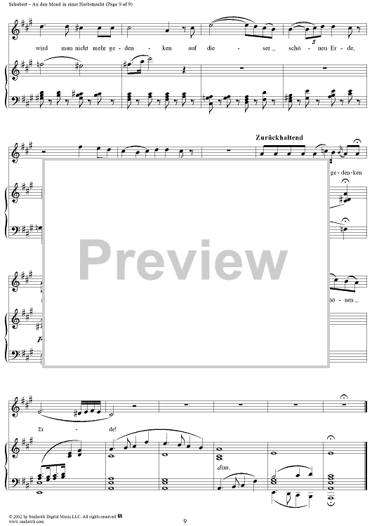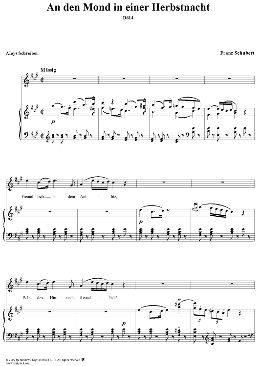 Digital Sheet Music for An den Mond in einer Herbstnacht, D614 by Franz Schubert scored for Voice/Piano; id:256396