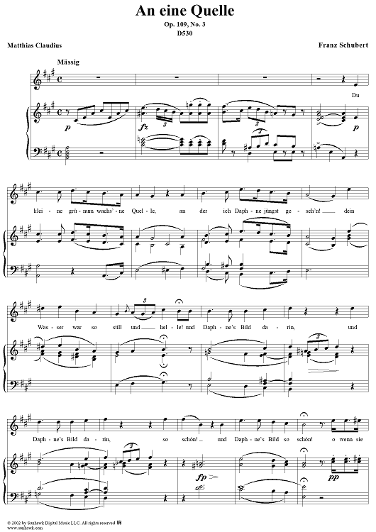 Digital Sheet Music for An eine Quelle, Op. 109, No. 3, D530 by Franz Schubert scored for Voice/Piano; id:256154