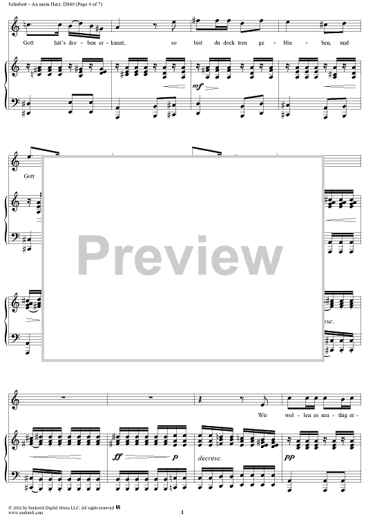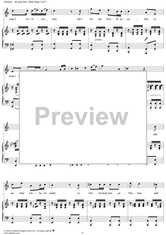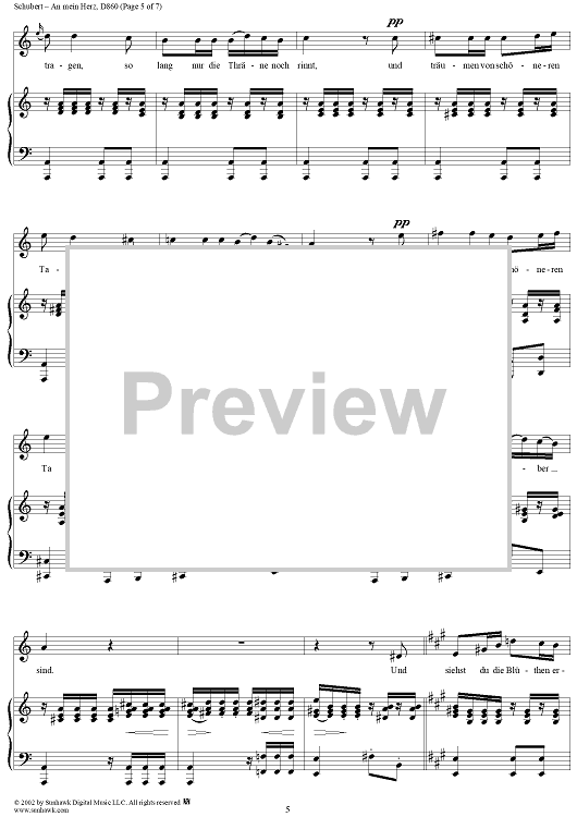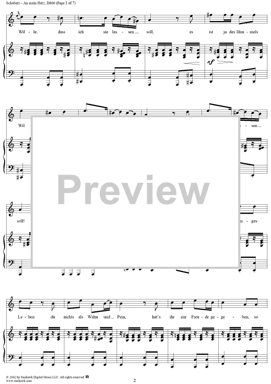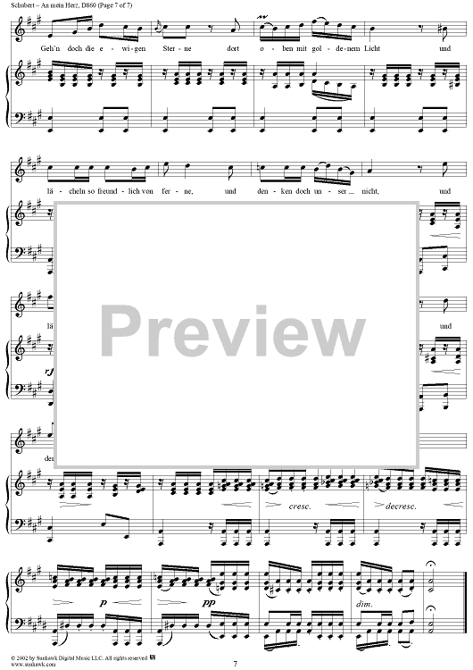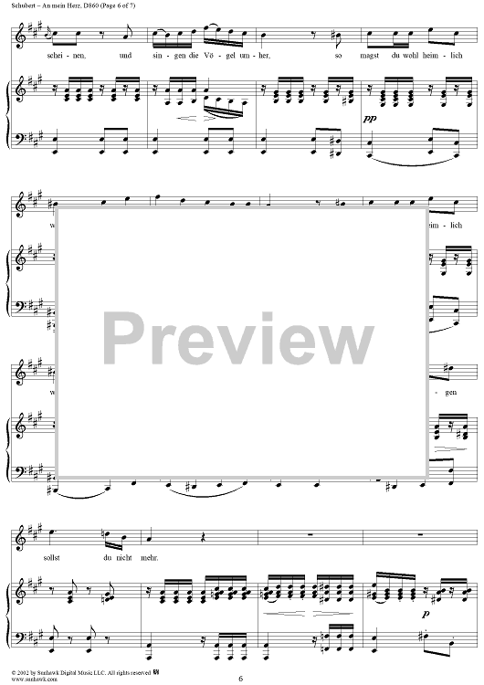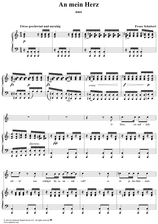 Digital Sheet Music for An mein Herz, D860 by Franz Schubert scored for Voice/Piano; id:256621