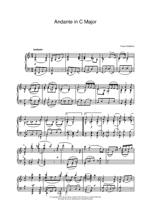 "Andante in C Major" Sheet Music by Franz Schubert