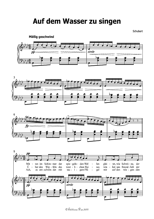 "Auf dem Wasser zu singen" Sheet Music by Franz Schubert