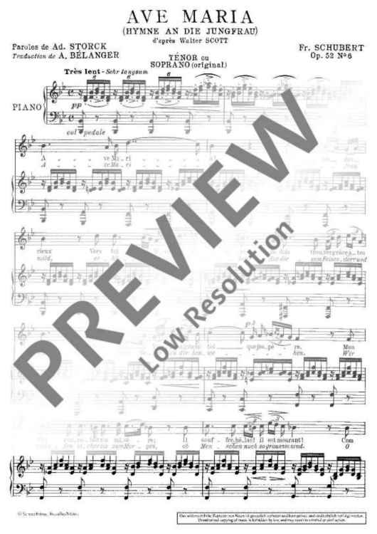 Digital Sheet Music for Ave Maria in B flat major by Franz Schubert scored for Voice (s/t) And Piano; id:477600