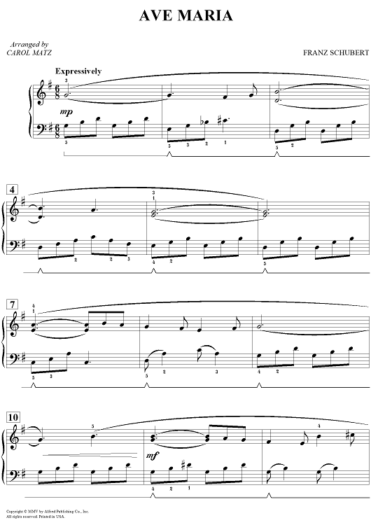 Digital Sheet Music for Ave Maria by Franz Schubert, Carol Matz scored for Piano; id:453945