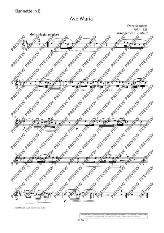 Digital Sheet Music for Ave Maria by Franz Schubert, Rudolf Mauz scored for Clarinet In Bb And Piano; id:497844
